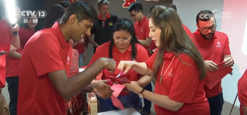 當(dāng)?shù)貢r(shí)間1月28日一大早,也就是北京時(shí)間的除夕夜,巴西東北部小鎮(zhèn)阿波迪打破了往日的平靜。很多當(dāng)?shù)孛癖娭溃麄兊闹袊?guó)朋友即將舉行春節(jié)慶?;顒?dòng),因而早早地來(lái)到了活動(dòng)現(xiàn)場(chǎng)。在現(xiàn)場(chǎng),中國(guó)農(nóng)業(yè)技術(shù)人員不僅貼上了春聯(lián)、掛上了福字,還邀請(qǐng)當(dāng)?shù)孛癖娨黄鹂创和?、包餃子、剪窗花、寫春?lián),這也是很多當(dāng)?shù)孛癖姷谝淮螀⒓哟汗?jié)慶?;顒?dòng)。