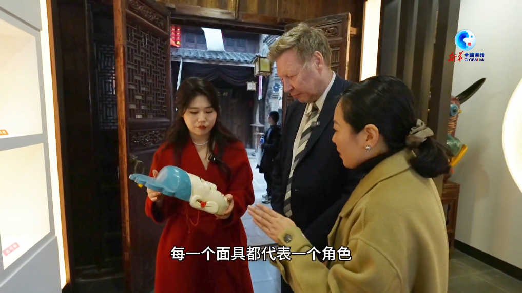 近期,德國人艾哈德來到安徽省池州市貴池區(qū)儺文化主題景區(qū)儺仙鎮(zhèn),通過欣賞非遺儺戲表演、體驗儺面具、觀看儺戲主題演出等感受中國年戲文化。作為第一批國家級非物質(zhì)文化遺產(chǎn)代表性項目的池州儺戲,是安徽省古老稀有的劇種之一,有“戲曲活化石”之稱。