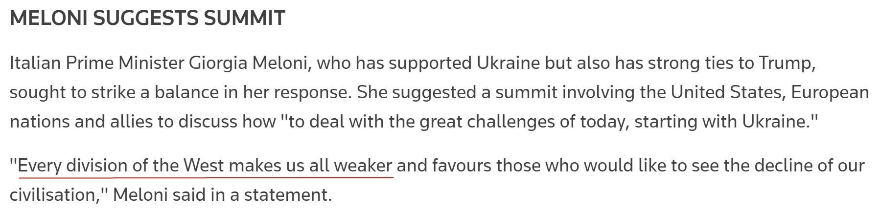 不少歐洲國家領(lǐng)導(dǎo)人隨后發(fā)聲力挺烏克蘭。有輿論認(rèn)為,美烏談判破裂及其引發(fā)的余波再次凸顯了跨大西洋聯(lián)盟的分歧與裂痕。