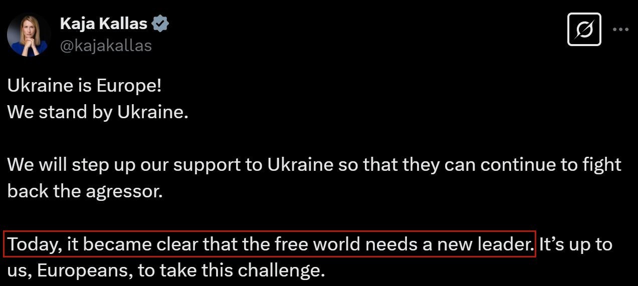 歐盟外交與安全政策高級代表卡拉斯日前表示,“世界需要一個新的領(lǐng)導(dǎo)者”。言外之意就是,西方不能只靠美國。