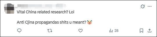 在該所X平臺賬號轉(zhuǎn)發(fā)《華爾街日報》報道的評論區(qū),有人說:“重要的中國相關(guān)研究?哈哈哈,你說的是反華宣傳吧?!?/p>