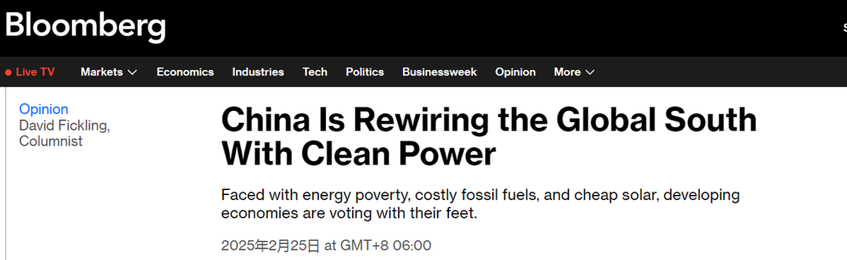 對于資金匱乏的“全球南方”國家而言,這種價格優(yōu)勢改變了游戲規(guī)則。美國彭博社報道指出,能源就是命運(yùn)。中國太陽能和風(fēng)能設(shè)備方面的大量產(chǎn)能正在“用清潔能源重新連接全球南方”,使孟加拉國和肯尼亞等發(fā)展中國家也能夠用上可再生能源。