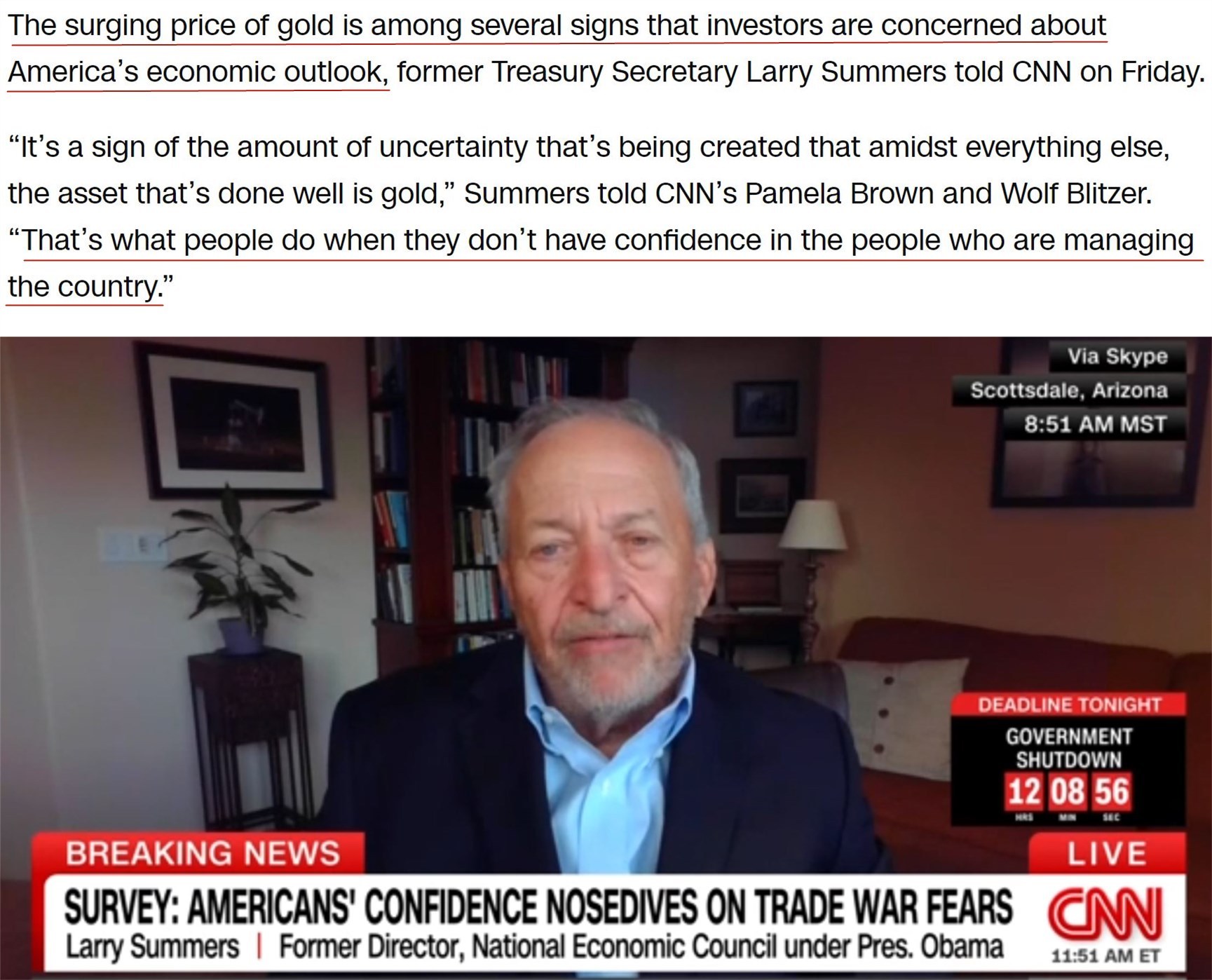 美國前財(cái)政部長勞倫斯·薩默斯在接受采訪時(shí)表示,特朗普反復(fù)無常的政策和言行正在侵蝕全球市場對美元的信任,金價(jià)的大漲正是這種不確定性的體現(xiàn)。