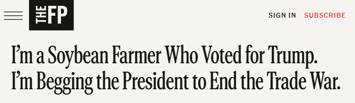 近日,拉格蘭德在The Free Press刊文表示,這場(chǎng)不斷升級(jí)的貿(mào)易戰(zhàn)對(duì)美國(guó)豆農(nóng)來(lái)說(shuō)是個(gè)沉重打擊,因?yàn)橹袊?guó)是其最大的海外市場(chǎng)。對(duì)于許多美國(guó)大豆種植戶來(lái)說(shuō),這仿佛是2018年噩夢(mèng)般場(chǎng)景的重現(xiàn)。那是特朗普總統(tǒng)的第一個(gè)任期,其采取的關(guān)稅措施使美國(guó)農(nóng)業(yè)損失了260億美元,僅大豆產(chǎn)業(yè)就損失了近200億美元。