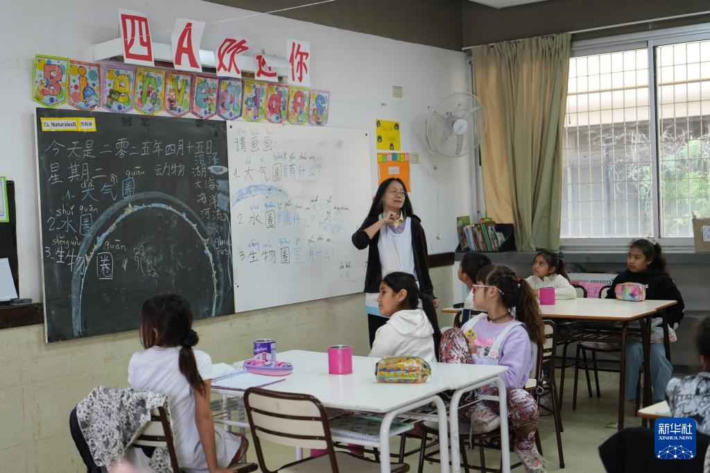 4月15日,阿根廷首都布宜諾斯艾利斯市第五學(xué)區(qū)第28號小學(xué)的中文教師在上課。新華社記者 張鐸 攝