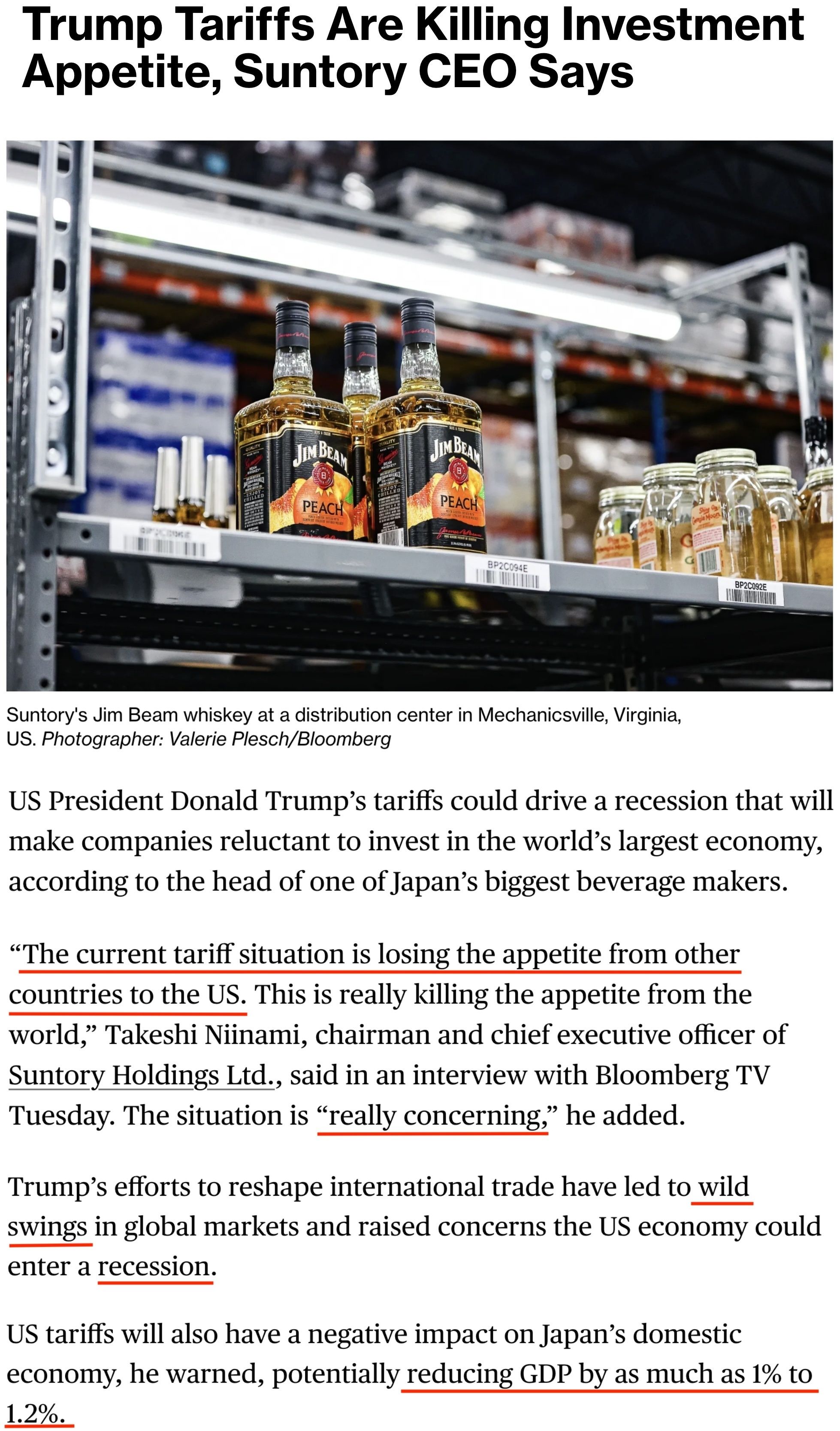 日本首相辦公室高級(jí)經(jīng)濟(jì)顧問(wèn)、日本最大飲料制造商之一三得利公司董事長(zhǎng)兼首席執(zhí)行官新浪剛史22日接受彭博社采訪(fǎng)時(shí)警告,美國(guó)的關(guān)稅措施已導(dǎo)致全球市場(chǎng)劇烈波動(dòng),可能引發(fā)美國(guó)經(jīng)濟(jì)衰退,并削弱其他國(guó)家對(duì)美國(guó)的投資意愿。