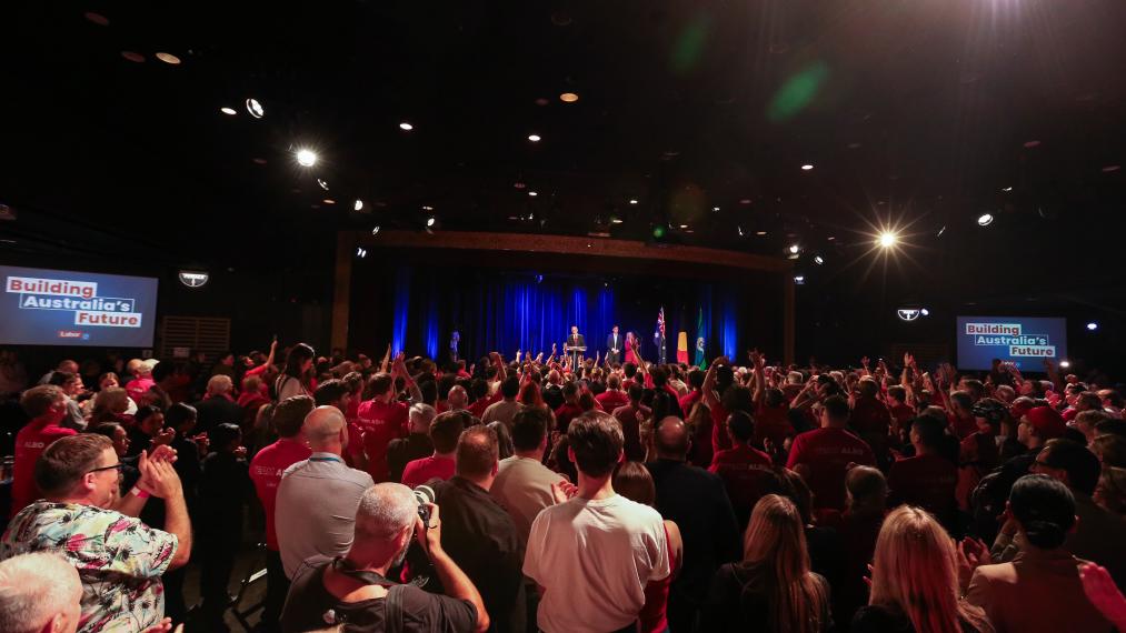5月3日,在澳大利亞悉尼,工黨支持者在競選集會上慶祝勝利。新華社記者馬平攝
