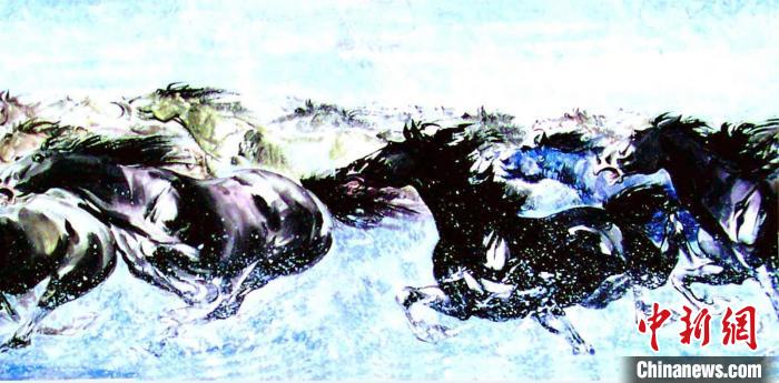 如今,當(dāng)他再回到新疆,他發(fā)現(xiàn)牧民的生活已發(fā)生巨大變化,新疆的旅游資源不斷開(kāi)發(fā)完善,伊犁天馬文化節(jié)吸引眾多游客。牧民們逐漸有了經(jīng)商意識(shí),帶著游客們探尋新疆的美景、美食,日子過(guò)得紅紅火火。姚迪雄也將這份喜悅揮毫于畫(huà)卷上,繪制伊犁的發(fā)展變化。比如,他的作品《揚(yáng)鬃奮蹄歌大風(fēng)》就描繪天馬浴河的景象,而“天馬浴河”是前往伊犁昭蘇的游客們最期待的節(jié)目之一。他將這幅作品送給了新疆伊犁哈薩克自治州昭蘇縣,作為游子獻(xiàn)給家鄉(xiāng)的一份禮物。