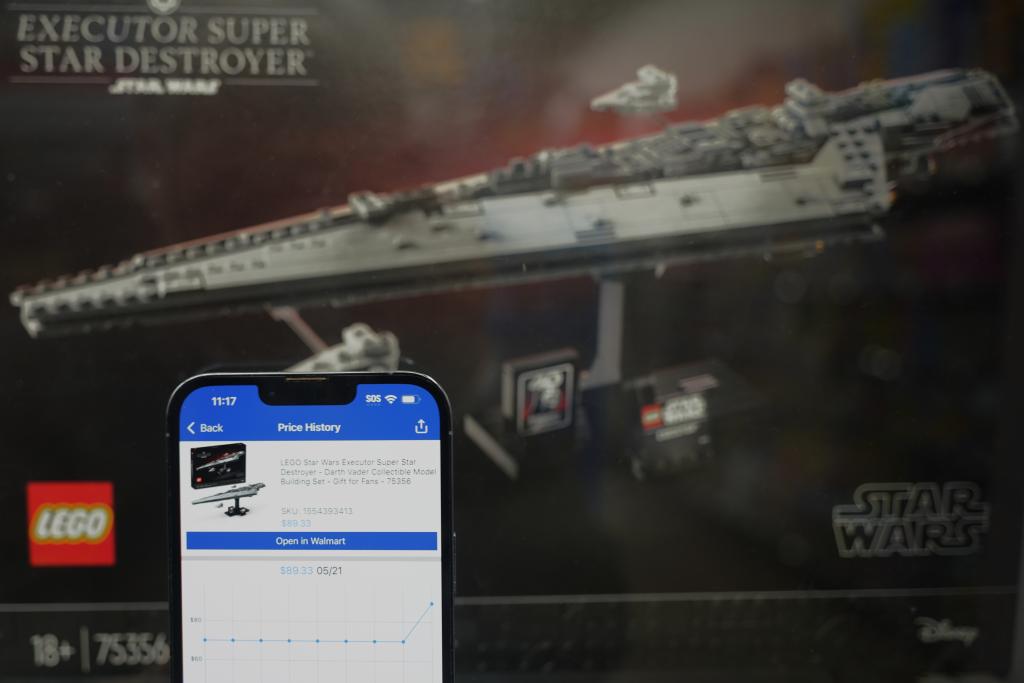 5月21日,在美國加利福尼亞州舊金山灣區(qū)圣萊安德羅的一家沃爾瑪超市,價(jià)格跟蹤軟件顯示一款星球大戰(zhàn)主題的樂高玩具售價(jià)變化情況。新華社記者 吳曉凌 攝