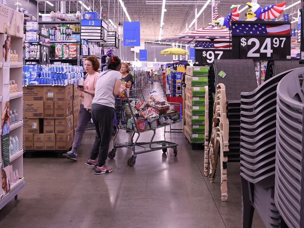 5月20日,顧客在美國加利福尼亞州洛杉磯縣一家沃爾瑪商店內(nèi)采購商品。新華社發(fā)(邱晨攝)