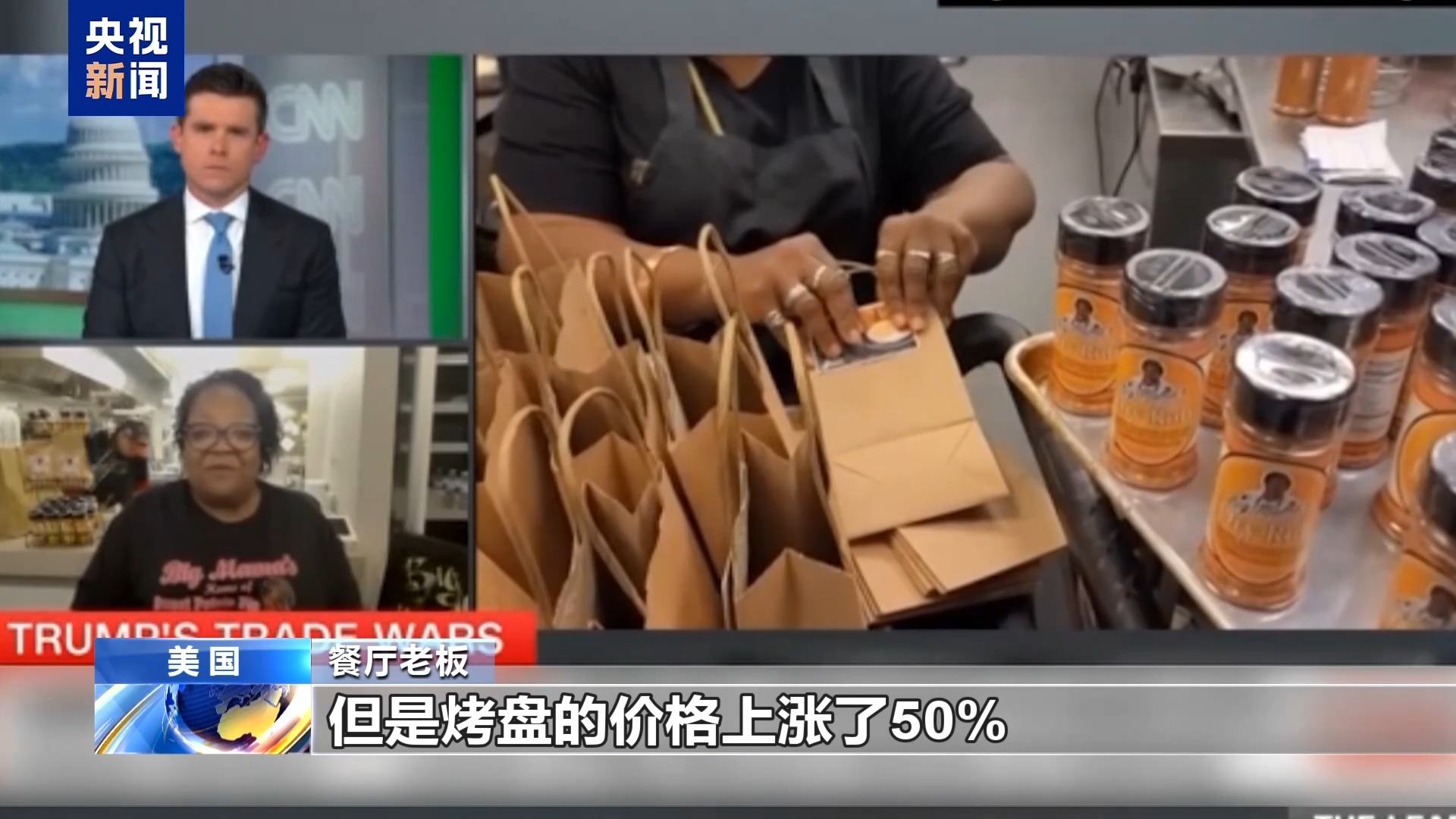 餐廳老板:我們餐廳的炸雞產(chǎn)品上過電視臺的節(jié)目,我們也在線上賣調(diào)料產(chǎn)品,這是關(guān)稅影響最大的地方。另外就是餐廳的供應(yīng),比如我們使用谷物面包,我們一般用鋁箔烤盤制作面包,但是烤盤的價(jià)格上漲了50%,所以我們現(xiàn)在換回平底鍋制作面包。