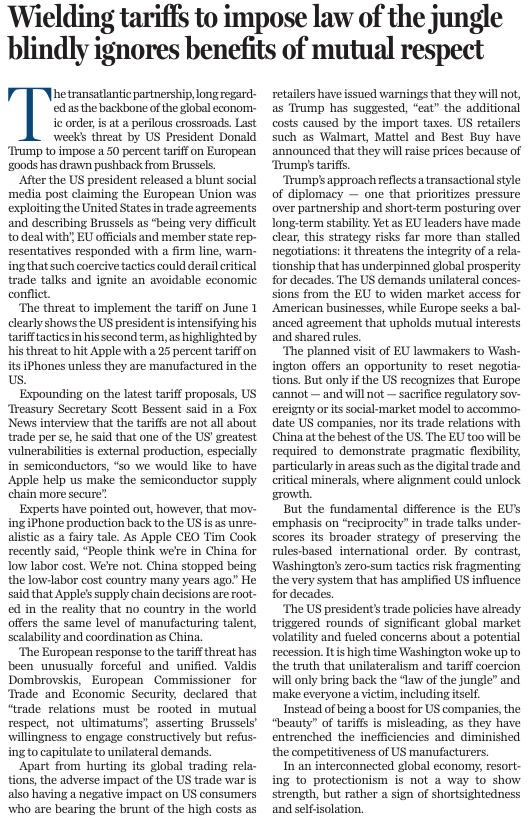 本文編譯自《中國日報》5月26日社論