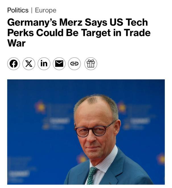 德國(guó)總理默茨:“目前,美國(guó)科技公司在歐盟受到‘大力保護(hù)’,包括在稅收方面,而這種情況可以改變。我并不想讓對(duì)抗升級(jí),而是希望共同解決這個(gè)問(wèn)題。在歐盟看來(lái),貿(mào)易戰(zhàn)沒(méi)有贏家。(可是)在美國(guó)看來(lái),關(guān)稅能夠單方面保護(hù)美國(guó)經(jīng)濟(jì),也是一種‘零和游戲’,即當(dāng)歐盟經(jīng)濟(jì)變得更糟糕時(shí)對(duì)美國(guó)有利?!?/p>