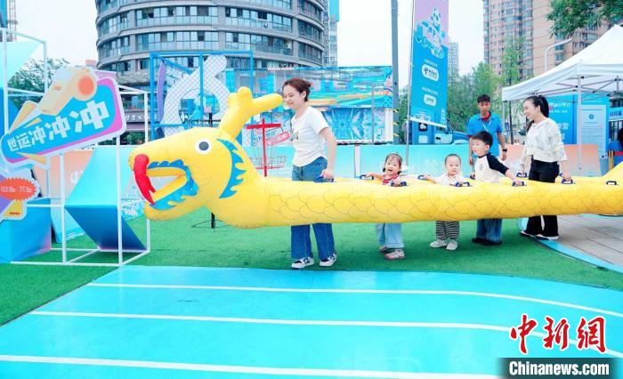 5月30日,市民游客在成都世運(yùn)會“跟著賽事去旅行”武侯站體驗(yàn)趣味旱地龍舟。成都世運(yùn)會執(zhí)委會供圖