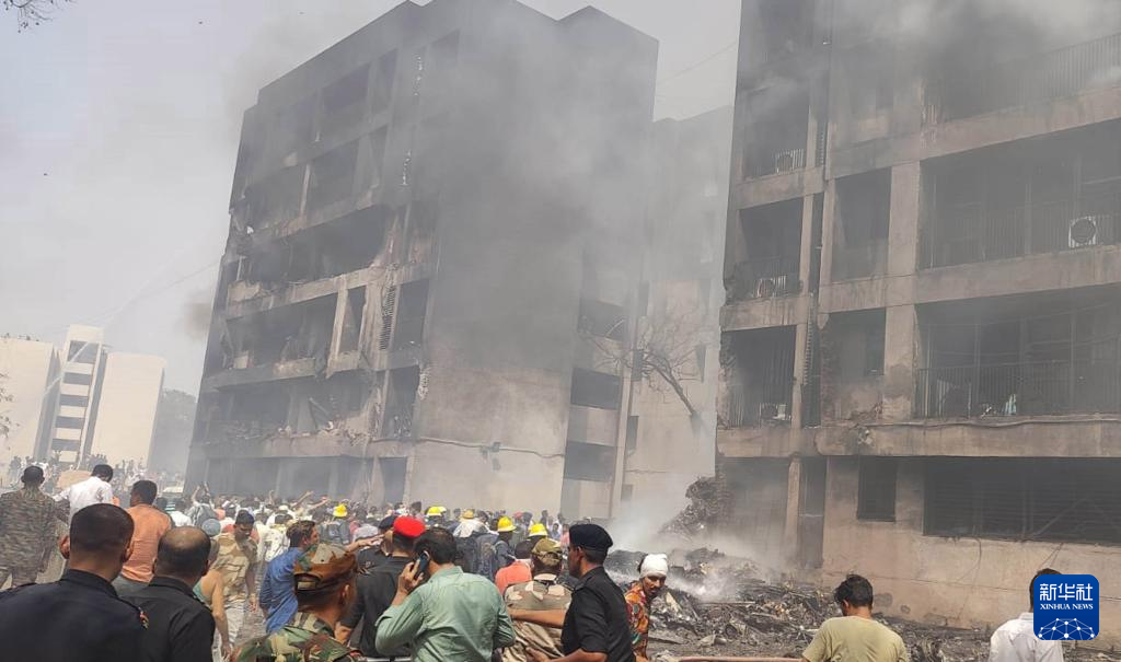 6月12日,在印度古吉拉特邦艾哈邁達(dá)巴德,人們?cè)诳蜋C(jī)失事現(xiàn)場(chǎng)進(jìn)行救援。新華社/印度聯(lián)合新聞社