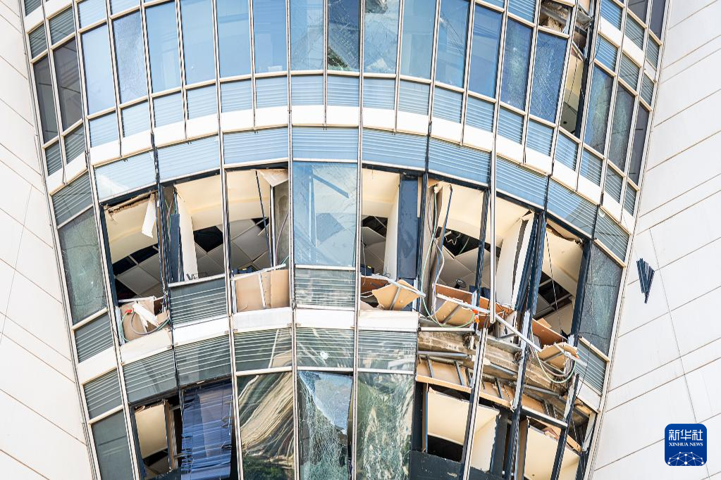 這是6月20日在以色列北部海法拍攝的在導(dǎo)彈襲擊中受損的建筑。新華社/基尼圖片社