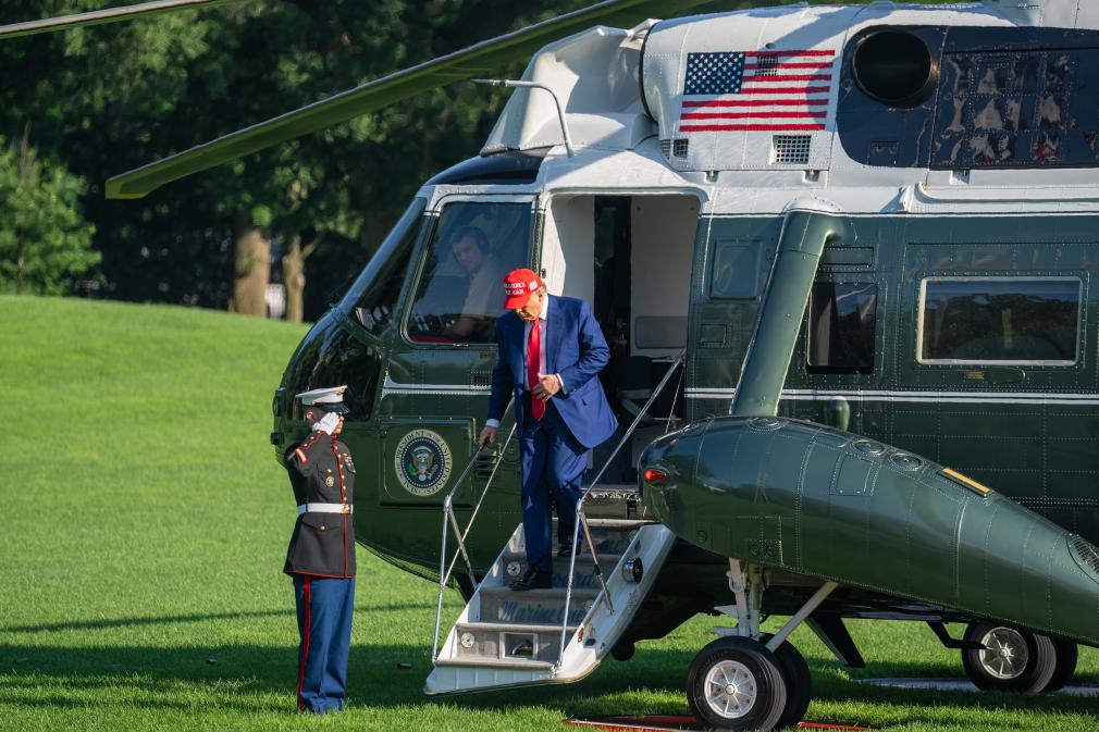 6月21日,美國總統(tǒng)特朗普返回華盛頓白宮。新華社記者 胡友松 攝