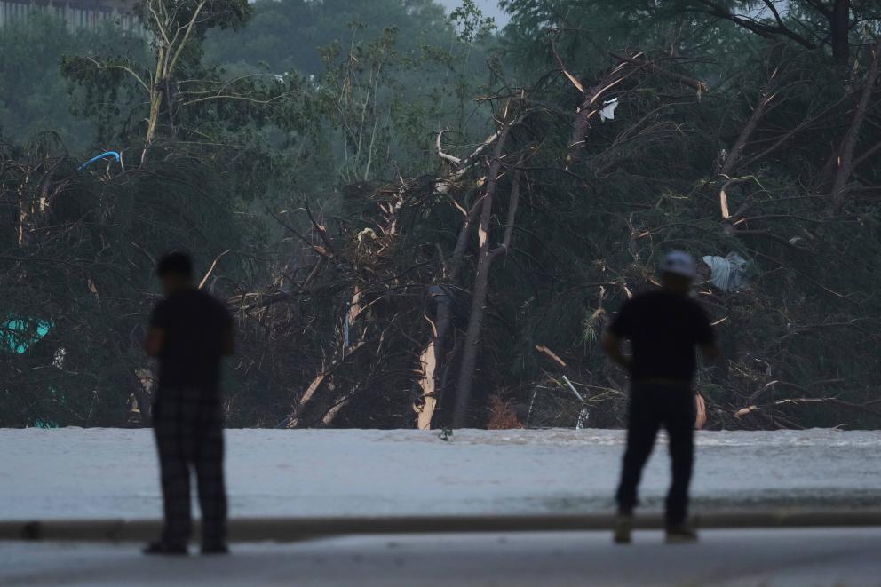 7月4日,在美國得克薩斯州英格勒姆市,人們在瓜達盧普河沿岸查看。新華社/美聯