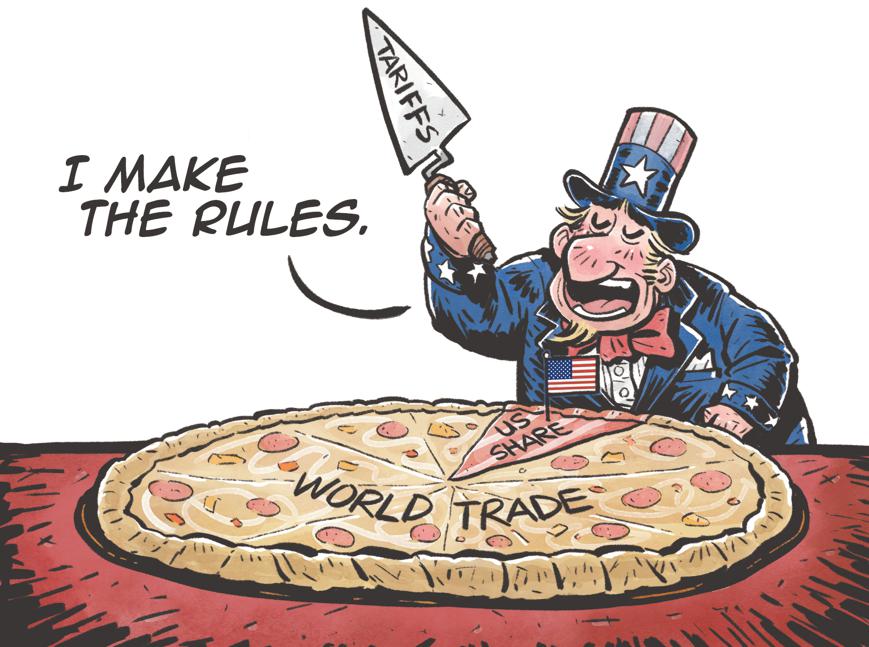 文章指出,歷史上曾有過這樣的時(shí)刻:隨著國(guó)際關(guān)系中的公平表象消退,粗暴的權(quán)力博弈卷土重來。這種情況同樣適用于當(dāng)代全球貿(mào)易體系。過去幾十年里,美國(guó)一直宣稱,這套貿(mào)易體系立足于開放的市場(chǎng)、以規(guī)則為基礎(chǔ)的秩序以及互惠互利,構(gòu)成了良性循環(huán)。