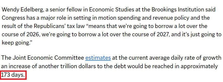 在美國(guó)布魯金斯學(xué)會(huì)高級(jí)研究員溫迪·埃德爾伯格看來,共和黨稅法的出臺(tái)“意味著我們將在2026年借很多錢,在2027年還要借很多錢,而且會(huì)繼續(xù)借下去”。