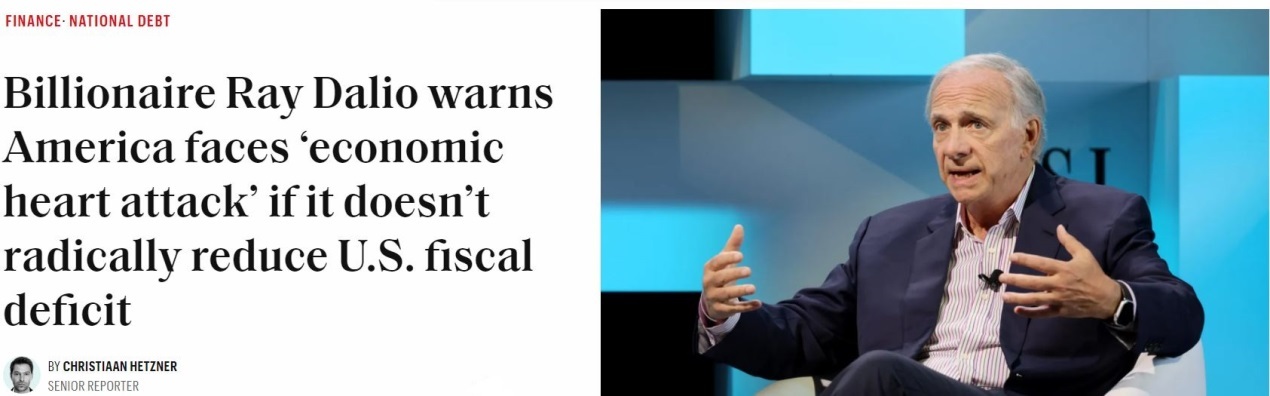 美國(guó)橋水基金創(chuàng)始人達(dá)利歐此前更是警告,如果不能有效控制財(cái)政赤字和債務(wù)規(guī)模,美國(guó)經(jīng)濟(jì)遲早會(huì)“心臟病發(fā)作”。