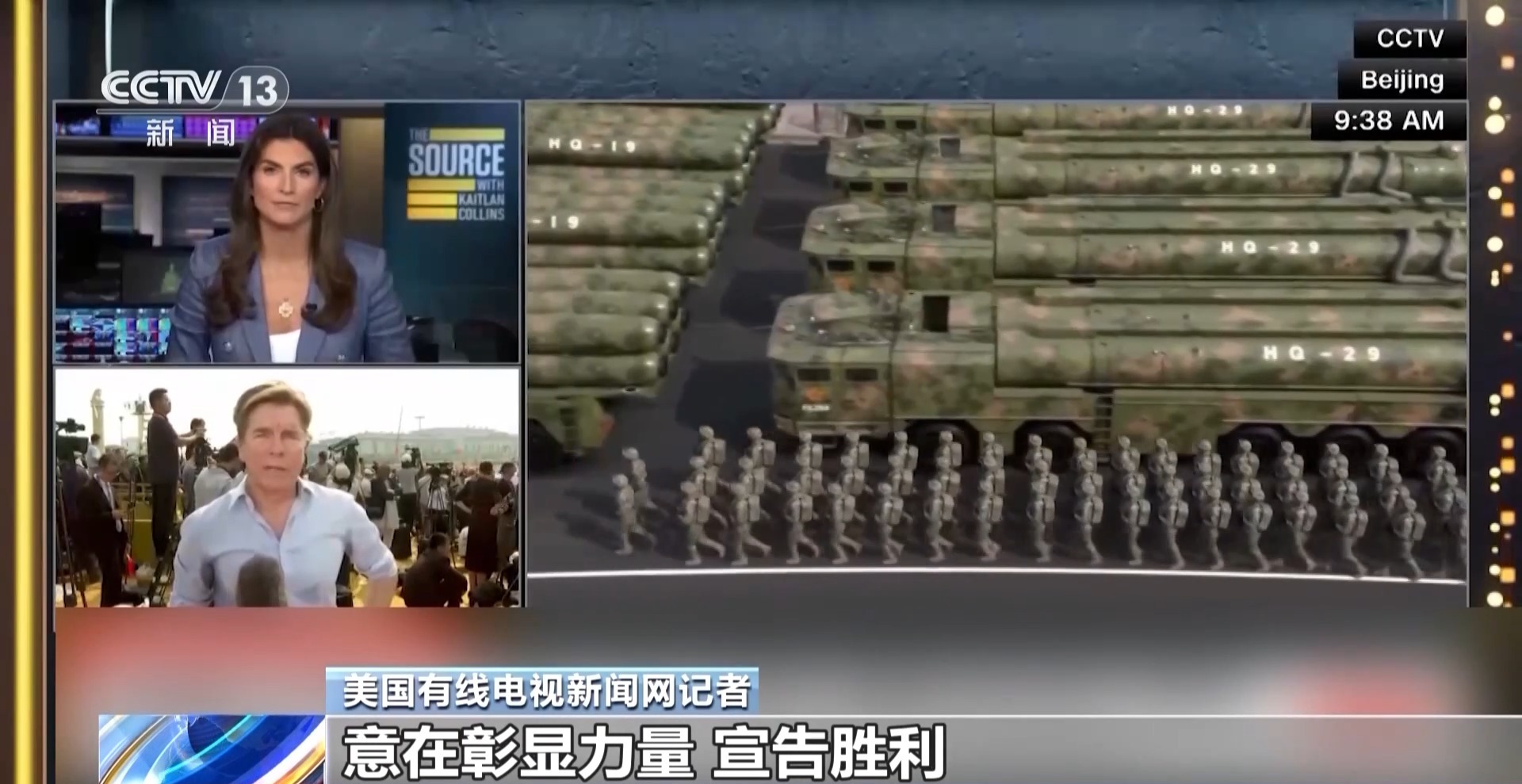 美國(guó)有線電視新聞網(wǎng)主持人:今晚此刻,我們正在關(guān)注北京這場(chǎng)盛大閱兵的現(xiàn)場(chǎng)直播畫面 。
