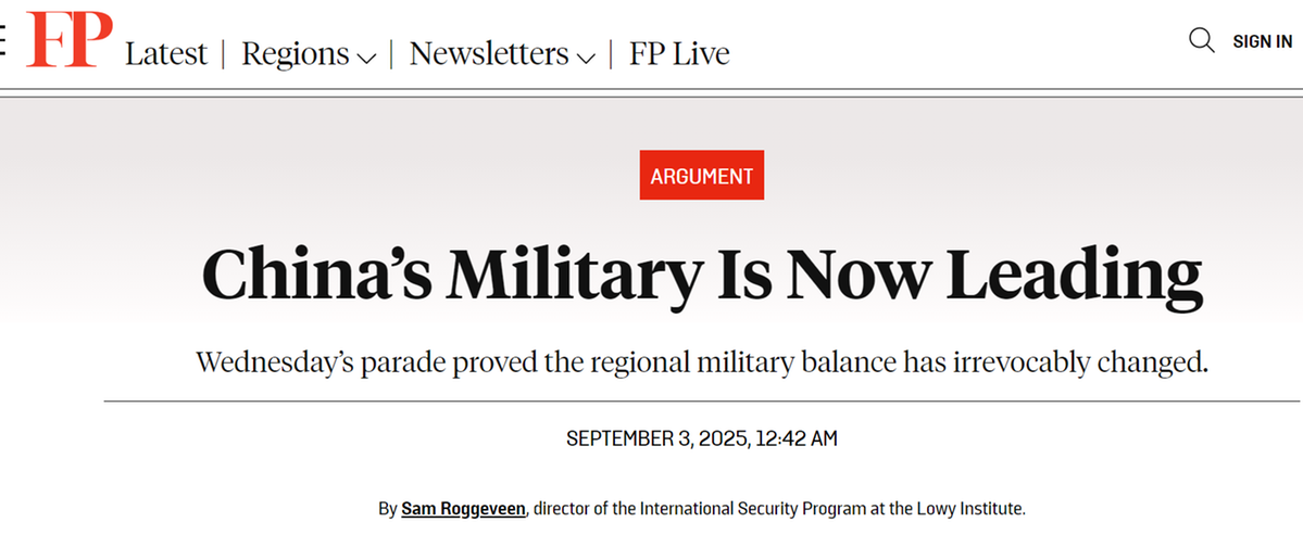 洛伊研究所國(guó)際安全項(xiàng)目主任薩姆·羅格維恩在美國(guó)《外交政策》網(wǎng)站撰文稱,西方的軍事規(guī)劃人員會(huì)對(duì)閱兵式上展出的裝備感到驚訝,已經(jīng)不能再說(shuō)中國(guó)軍隊(duì)在迎頭趕上,或者所謂“抄襲”外國(guó)軍事裝備設(shè)計(jì),“中國(guó)軍備正在創(chuàng)新,并且處于領(lǐng)先地位”。