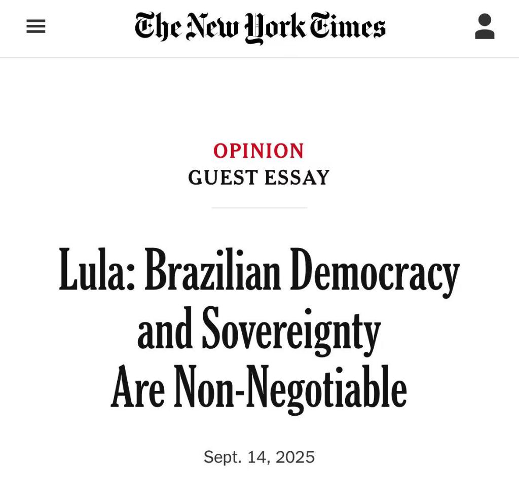 巴西總統(tǒng)盧拉9月14日在美國《紐約時報》觀點專欄發(fā)表客座文章。