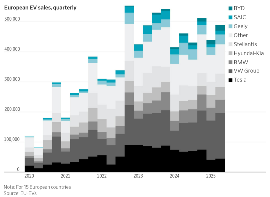 《華爾街日報(bào)》9月17日發(fā)表文章稱,在電動(dòng)汽車領(lǐng)域,“中國制造”的足跡在不斷擴(kuò)大,目前已占全球電動(dòng)汽車銷量的一半以上。