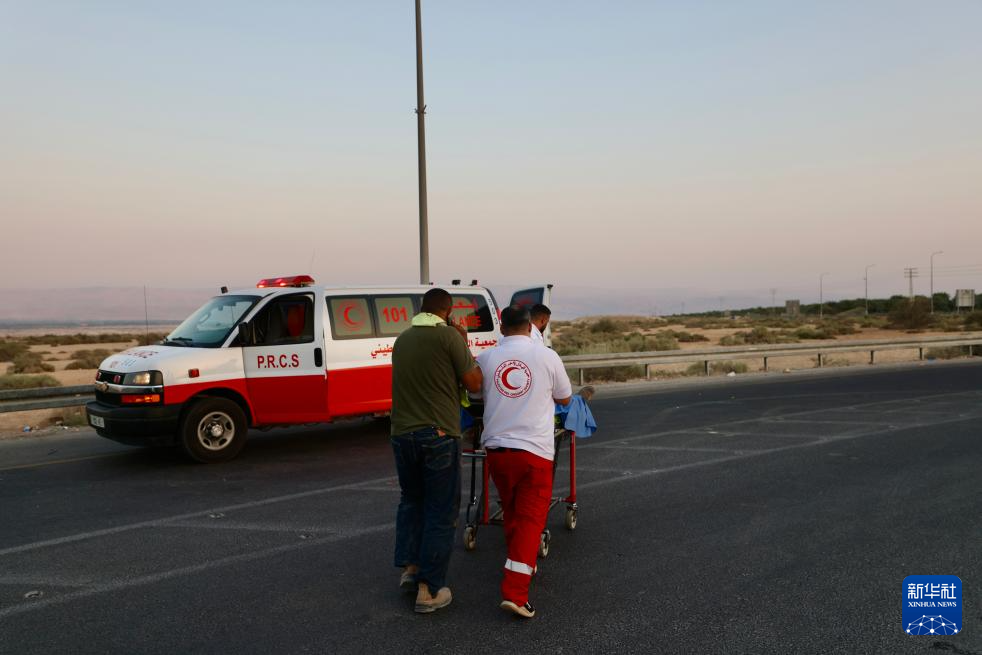 9月18日,急救人員在約旦河西岸地區(qū)與約旦交界處艾倫比橋陸路口岸附近的襲擊現(xiàn)場開展工作。新華社發(fā)(賈馬爾·阿瓦德攝)