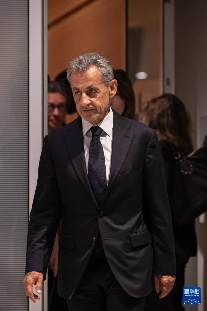 9月25日,在法國巴黎,法國前總統薩科齊在庭審后離開。新華社發(fā)(奧雷利安·莫里薩爾攝)