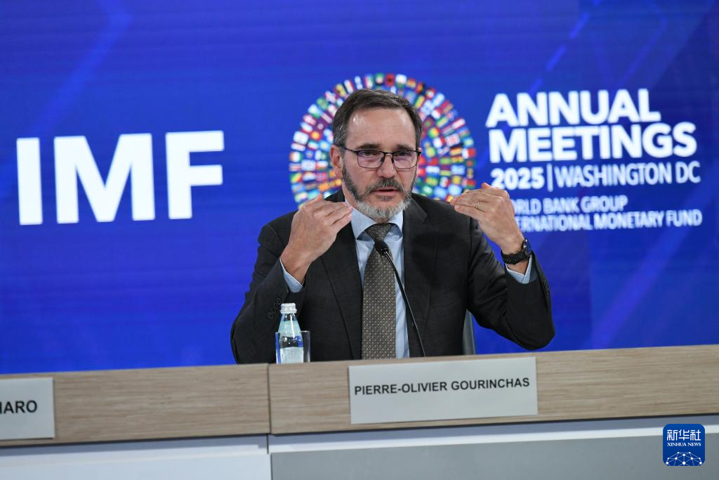 10月14日,在美國(guó)華盛頓,國(guó)際貨幣基金組織首席經(jīng)濟(jì)學(xué)家皮埃爾-奧利維耶·古蘭沙在《世界經(jīng)濟(jì)展望報(bào)告》新聞發(fā)布會(huì)上講話。新華社記者 李睿 攝