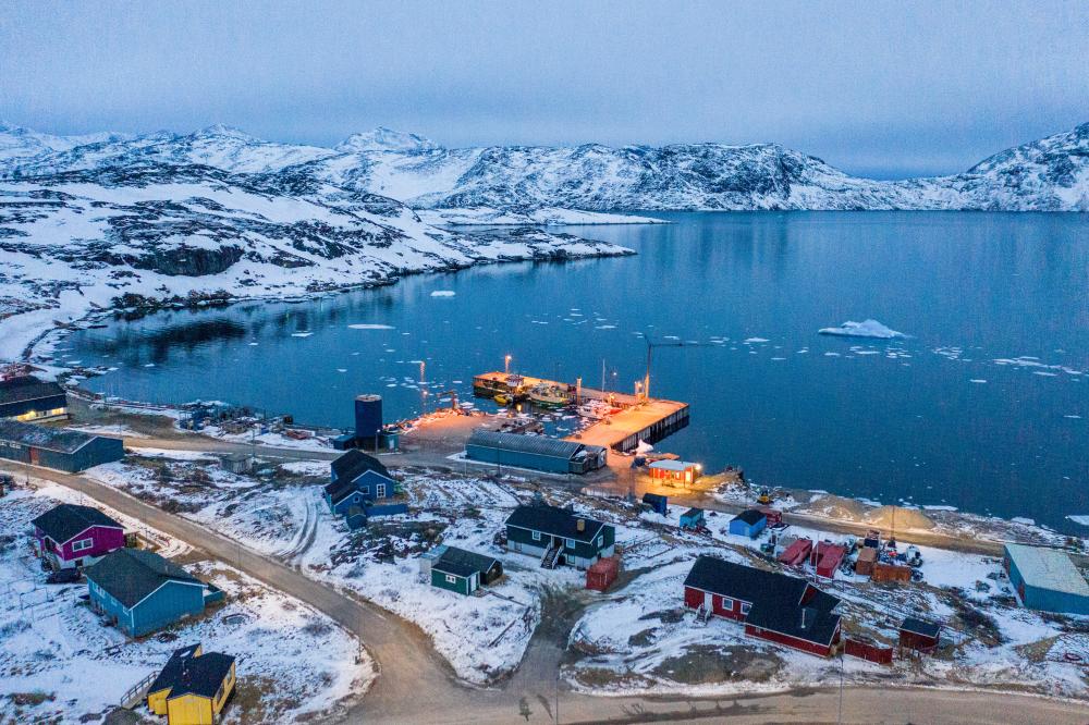 這是3月21日拍攝的丹麥自治領地格陵蘭島納爾薩克鎮(zhèn)的碼頭(無人機照片)。新華社記者彭子洋攝