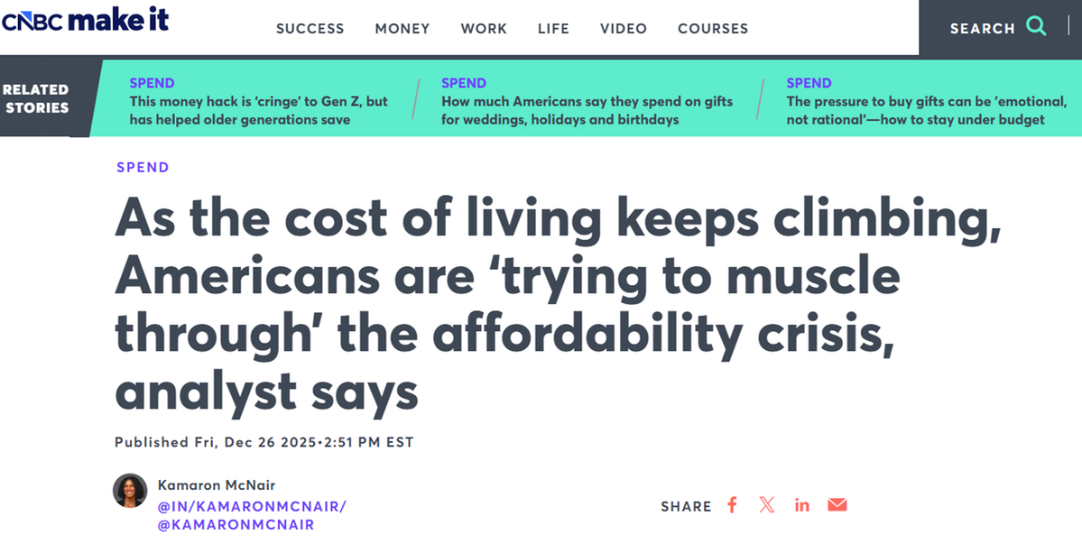 2025年末,“可負擔性危機”(affordability crisis)成為美國主流媒體焦點。美國挑起的貿(mào)易戰(zhàn),其自傷效應(yīng)在美國民眾的生活成本上體現(xiàn)得淋漓盡致。