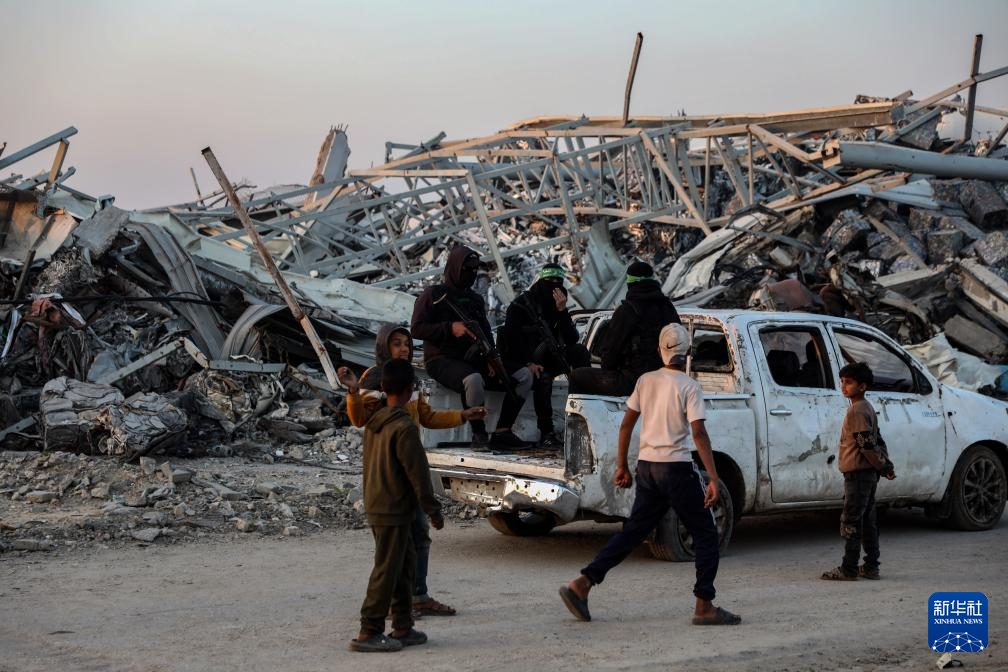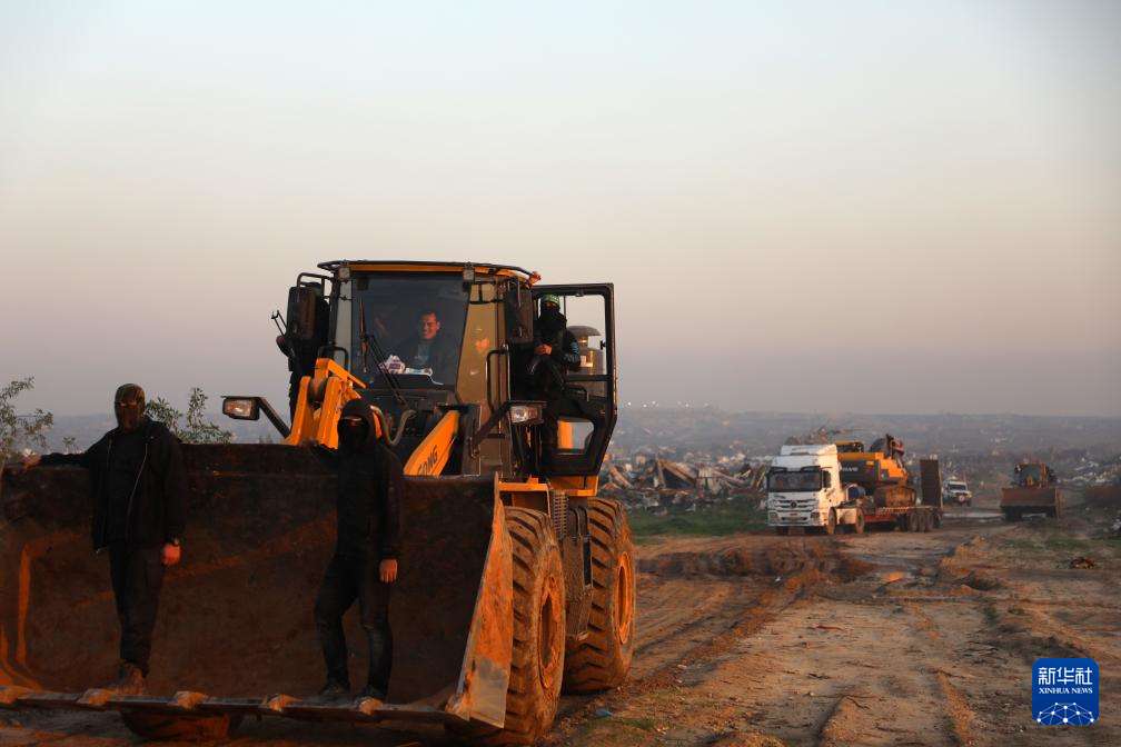 1月7日,在加沙城東南部的宰通社區(qū),巴勒斯坦伊斯蘭抵抗運動(哈馬斯)成員參與對加沙地帶最后一具以色列被扣押人員遺體的搜尋工作。新華社發(fā)(里澤克·阿卜杜勒賈瓦德攝)