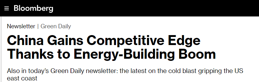 美國彭博社網(wǎng)站28日發(fā)表題為《中國憑借能源建設(shè)熱潮獲得競爭優(yōu)勢》的文章。
