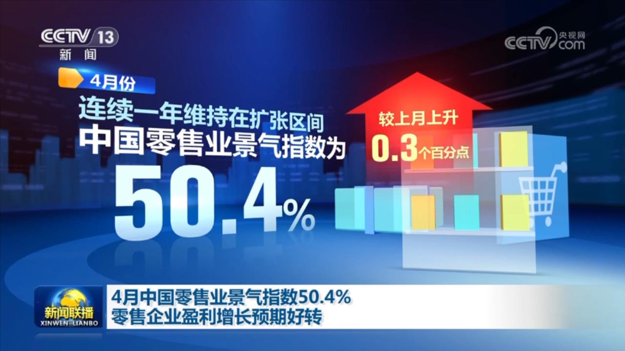 中國商業(yè)聯(lián)合會最新發(fā)布的中國零售業(yè)景氣指數(shù)顯示,4月份,中國零售業(yè)景氣指數(shù)為50.4%,較上月上升0.3個百分點,連續(xù)一年維持在擴張區(qū)間。從行業(yè)分類看,商品經(jīng)營類指數(shù)、租賃經(jīng)營類指數(shù)、電商經(jīng)營類指數(shù),較上月均有上升。