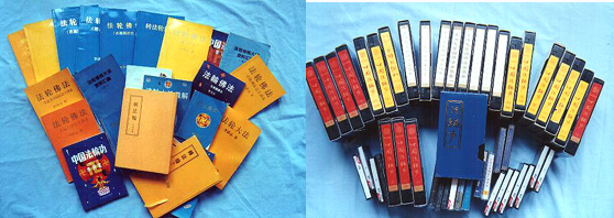 ▲徐祥蘭、王漢生印制的“法輪功”書籍及錄像帶