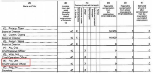 年審報(bào)告顯示,其財(cái)務(wù)總監(jiān)為李洪志的妻子李瑞(Rui Lee)