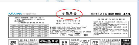 ▲《大紀(jì)元時(shí)報(bào)》的廣告專欄