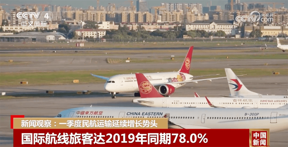 客運方面,全行業(yè)一季度共完成旅客運輸量接近1.8億人次,為歷年一季度客運量最高值,同比增長37.7%,較2019年同期增長10.2%。其中,國內(nèi)航線完成1.6億人次,規(guī)模較2019年同期增長14.3%;國際航線完成1412.0萬人次,規(guī)模恢復(fù)至2019年同期的78.0%。
