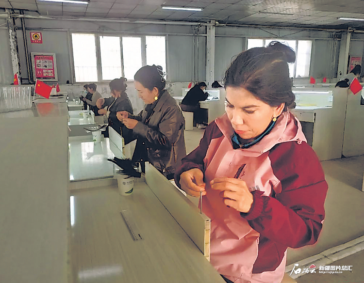 該公司負責人迪麗達爾·克依木說:“這個月我們有個100萬元的訂單,工人正加班加點生產(chǎn)?!?/p>