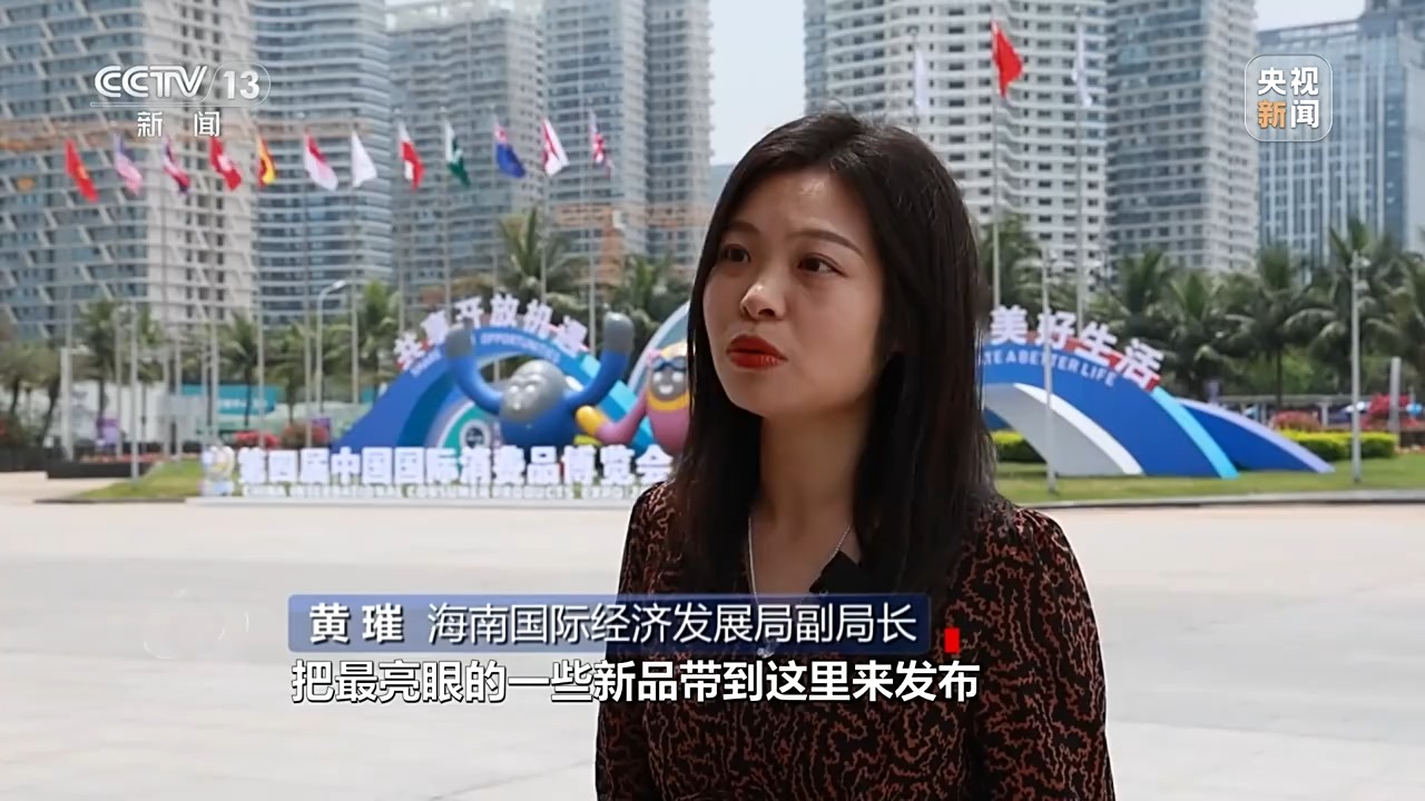 海南國際經(jīng)濟發(fā)展局副局長 黃璀:我們希望更多全球品牌把最亮眼的一些新品帶到這里來發(fā)布,更好跟中國消費市場進行對接。當(dāng)然我們也希望中國的消費精品,通過消博會新品發(fā)布舞臺,讓全世界看到,通過海南自貿(mào)港、通過消博會這個平臺走向全球。