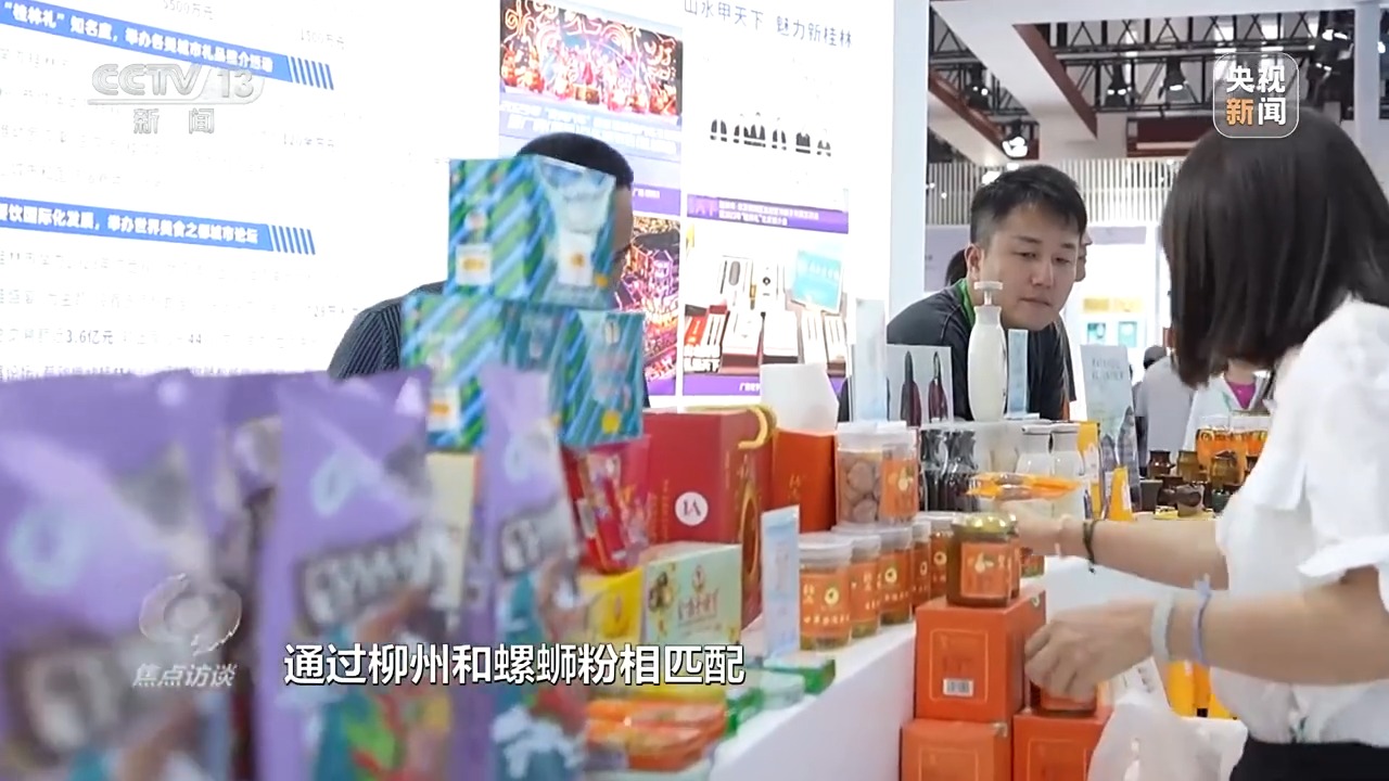 廣西壯族自治區(qū)商務(wù)廳工作人員 李春穎:往年我們都是桂茶、桂酒、桂藝,我們這一次想增加城市烙印,就選擇了六個區(qū)域消費培育試點城市,讓城市跟物品相掛鉤。我們通過柳州和螺螄粉相匹配,桂林和桂林有名的文創(chuàng)相匹配。展會可能是一個星期、一個時間段,通過展會引導(dǎo)消費者來到我們的城市,感受消費,全年消費。
