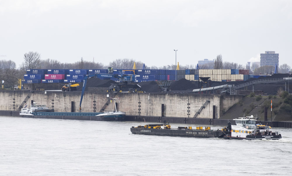 貨輪排隊??浚疖國Q笛駛?cè)胴涍\場站,卡車搭載著印有“渝新歐”“義新歐”“西安港”等字樣的集裝箱往來奔馳……這座萊茵河畔的港口,一派繁忙景象。