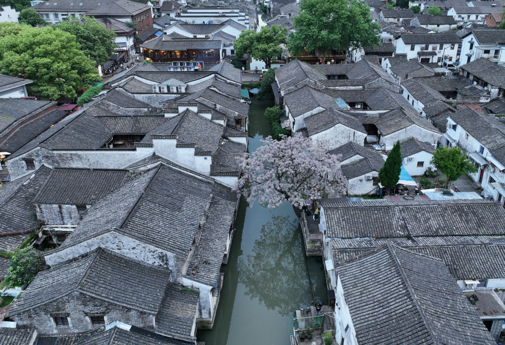鳥瞰紹興倉(cāng)橋直街(4月24日攝,無人機(jī)照片)。新華社記者翁忻旸 攝