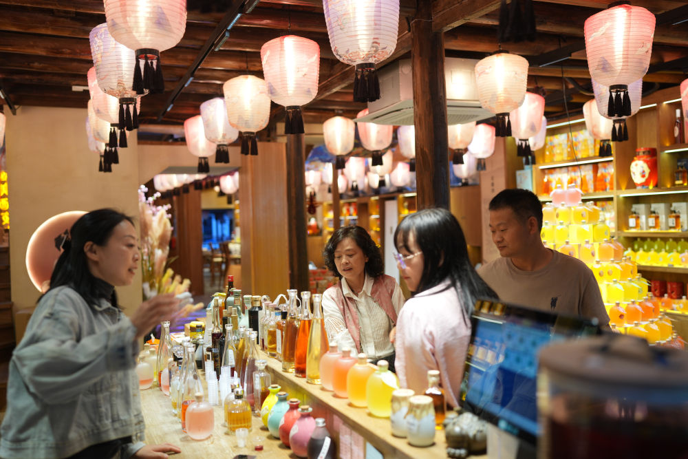 4月24日,游客在紹興倉(cāng)橋直街一家飲品店。新華社記者翁忻旸 攝