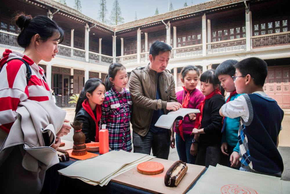 藏用之間,文字被喚醒。南潯實驗小學(xué)自2015年起與嘉業(yè)藏書樓合作建立雕版印刷傳習(xí)基地,讓雕版文化走進(jìn)了校園,目前該校已培養(yǎng)了200多名雕版印刷的小傳人?!拔覀兿Mㄟ^學(xué)生走進(jìn)來參觀,我們走出去講解,把藏書文化傳播得更廣?!编嵶谀姓f。