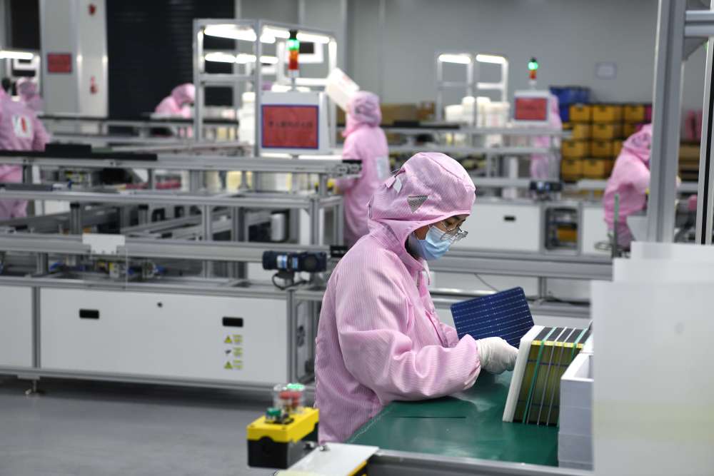 2023年3月1日,工作人員在“頂山—汊河”跨界一體化發(fā)展示范區(qū)的一家太陽能電池片企業(yè)生產線上忙碌。新華社記者 劉軍喜 攝