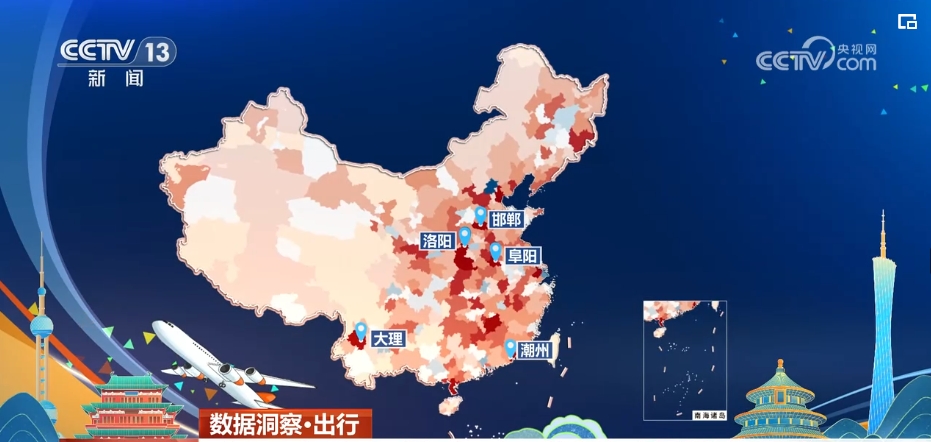 代表旅客凈流入的紅色占據(jù)了絕大多數(shù),達(dá)到城市總數(shù)的八成,甚至比4月30日還高了一成。在這些城市當(dāng)中,洛陽、潮州、大理、阜陽、邯鄲等城市成為旅客凈流入量較大的目的地,這意味著在假期第一天,有更多人從中心城市前往了中小城市。
